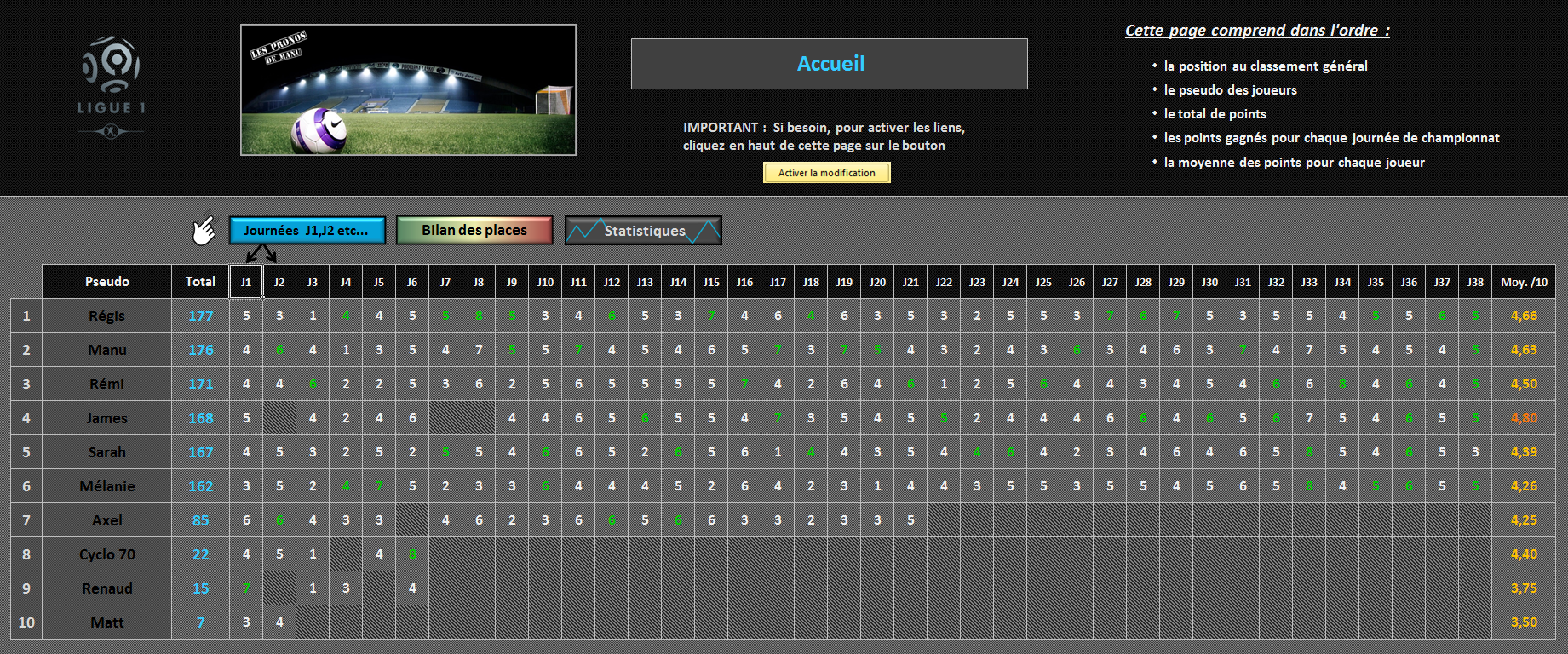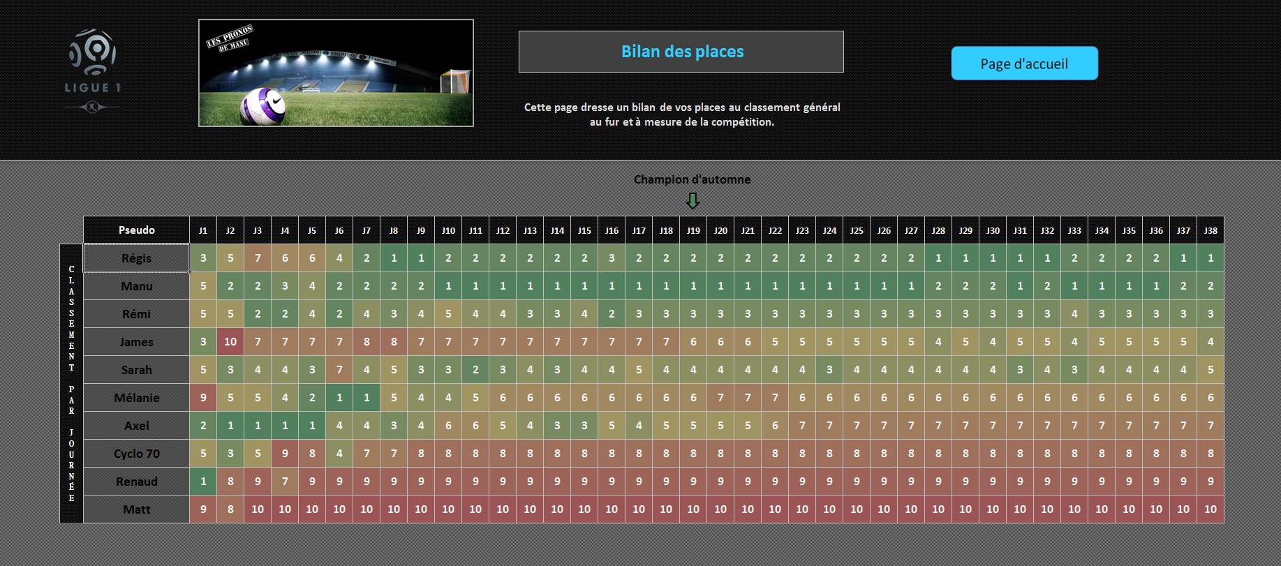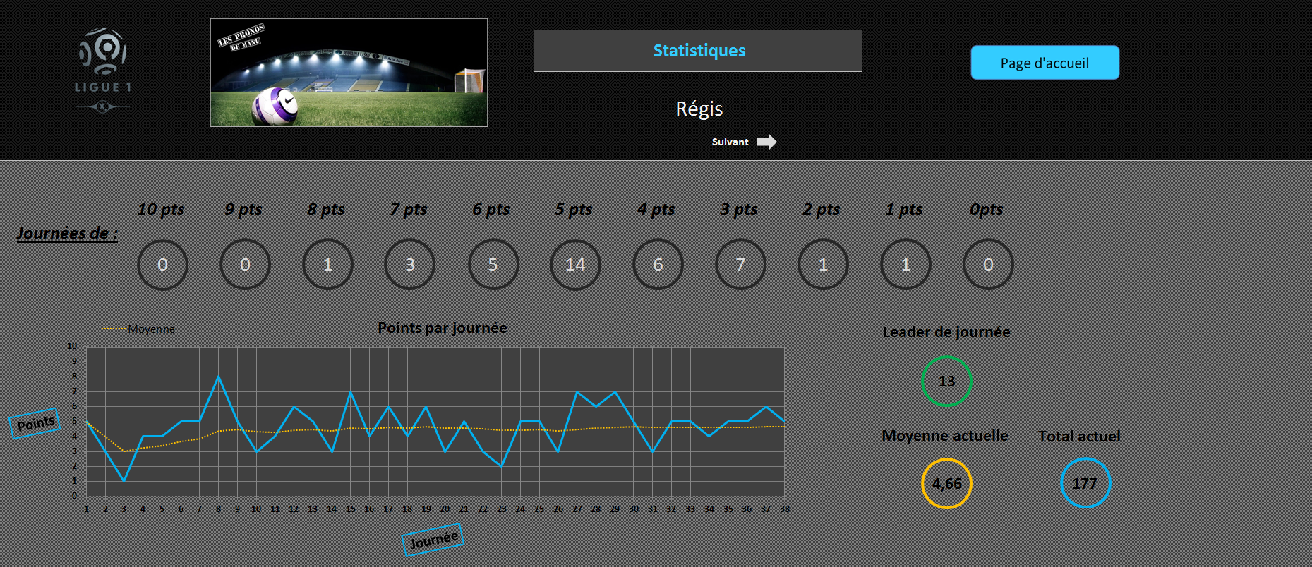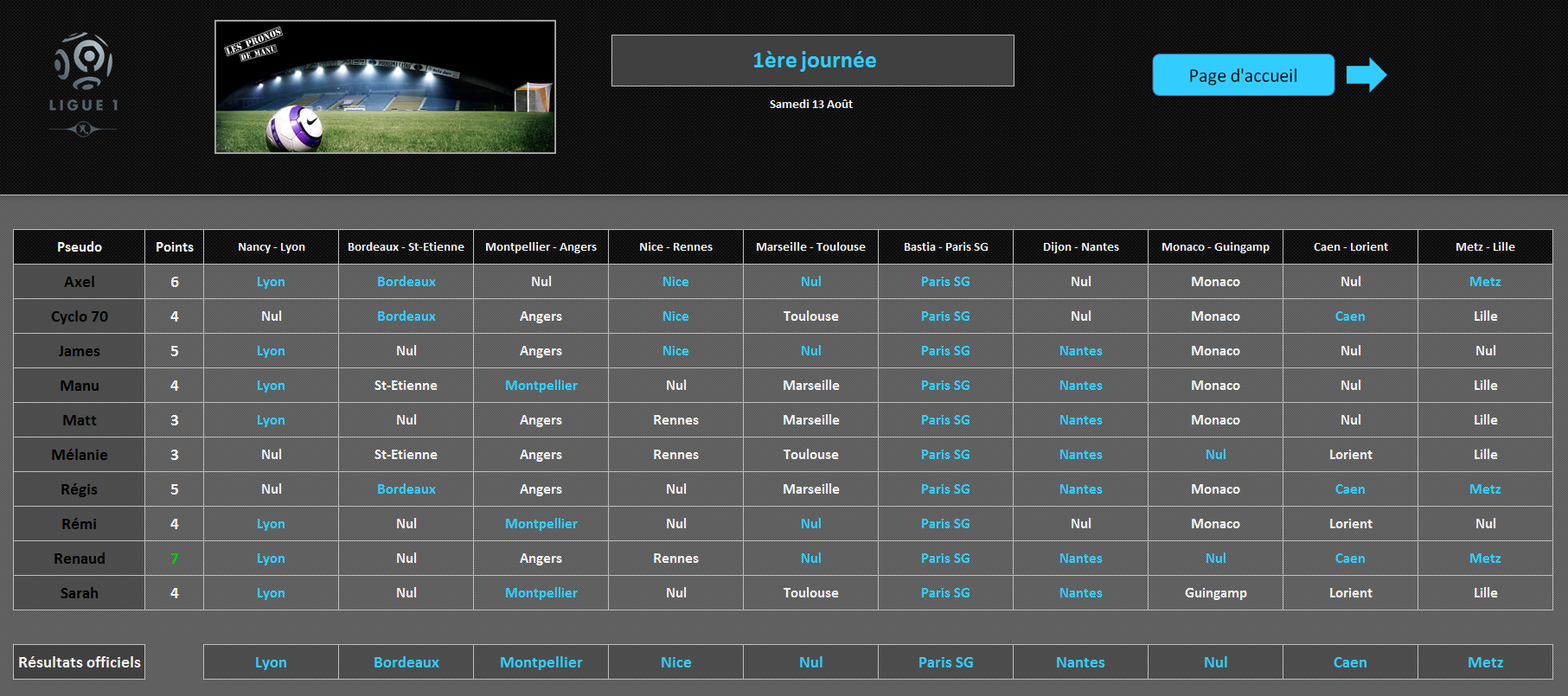 "Les Pronos de Manu" version Ligue 1 est un jeu de pronostics réalisé sur une saison complète du championnat français.